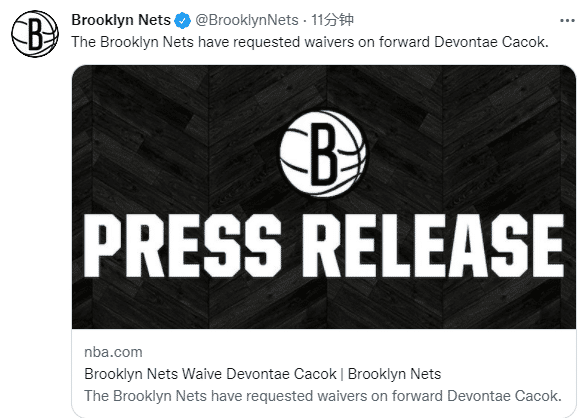 北京时间10月17日,篮网官宣完成两笔操作,正式宣布裁掉前锋卡考克,并且把杜克的训练营合同转化为双向合同,因此篮网15+2冲冠阵容正式确定,杜兰特、哈登和欧文三巨头领衔。