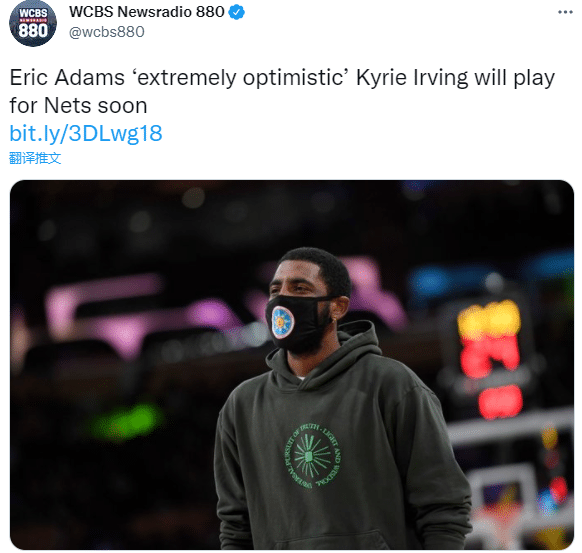 JRS直播网10月17日讯 欧文归队的利好消息来了,纽约市长竞选人EricAdams公开发声,他对欧文很快就能为篮网效力十分乐观;EricAdams现在是纽约市长的强有力竞选者,很有希望在11月3日成功当选纽约市长。