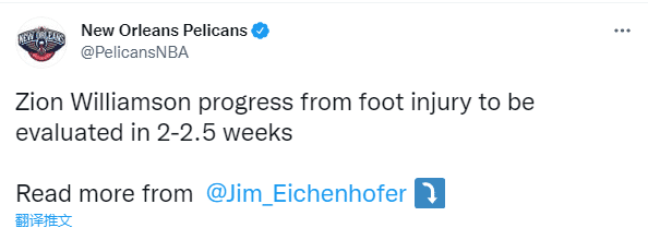 JRS直播网10月15日讯 ,新奥尔良鹈鹕队官宣锡安的伤情复查结果,右脚术后康复进展令人乐观,他将在2-2.5周内再次接受评估,暂无具体复出时间表;21岁锡安又伤了,至少伤停2周将缺席新赛季揭幕战以及第一周的比赛,医学专家表示锡安不能提前复出,否则会遭遇杜兰特式悲剧。