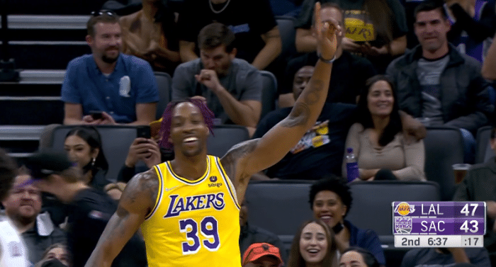 到了第二节,湖人队攻防两端打出统治力,威少外线三分开火,安东尼连中三分,詹姆斯疯狂攻击禁区,湖人在3分多钟的时间里打出16-0超级攻势,填补分差并且反超比分;湖人进攻越来越顺,安东尼中投依旧美如画,不过国王也找回手感,两队展开拉锯战。