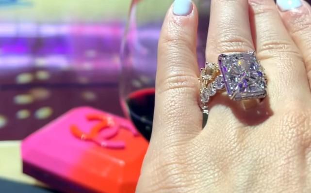在摄影师的照片上,偌大的麦迪逊广场花园的球馆里,只有罗斯和阿莱娜的身影。他们在浪漫的氛围里共进晚餐,罗斯单膝下跪向阿莱娜求婚,送上了一枚大钻戒。两人在鲜花前合影,甜蜜拥吻。
