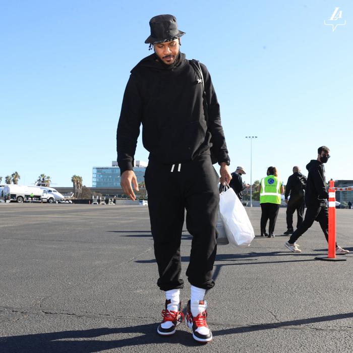 37岁安东尼身穿一套黑色运动装,还戴着一顶黑色帽子,很有大佬范,不愧为球迷心目中的社会瓜;上一场输给勇士,安东尼联手三巨头首发出战,贡献13分5篮板。