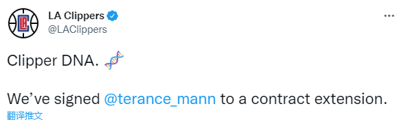 JRS直播网10月13日讯 ,洛杉矶快船正式续约特伦斯-曼恩,24岁曼恩和快船提前续约2年2200万美元新合同,未来四年继续留在快船;快船新星曾当小卡替身,季后赛狂砍39分助球队杀进西决。