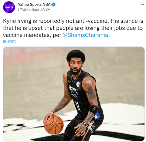JRS直播网10月13日讯 ,篮网队已经宣布禁赛欧文随队参加训练和比赛,直到他履行纽约的防疫规定,之后名记shams继续报道欧文的情况,凯里-欧文并不反对疫苗,他的立场是,他对人们因没有接种疫苗而失业感到不安,这也是他拒绝接种的重要原因。