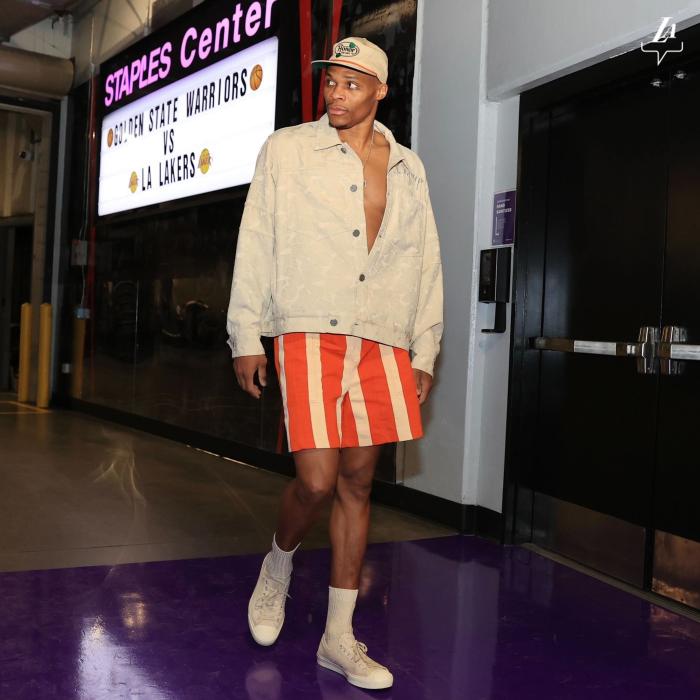 湖人官方晒出三巨头入场照,36岁詹姆斯身穿一套绿色运动套装,手里提着自己心爱的大水壶,戴着棒球帽,面部表情相当霸气;浓眉身穿一套蓝色套装,提着包包走进球馆,威少最时尚,穿着白色帆布鞋,搭配条纹短裤,上身穿着露出胸肌的白色外套,不愧为联盟时尚的代名词。