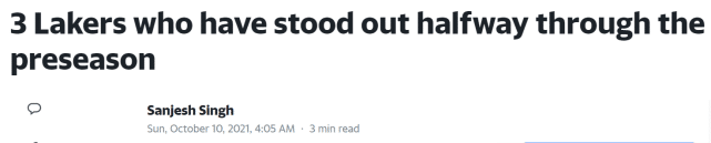 JRS直播网10月10日讯 本赛季,湖人一共安排了6场季前赛,如今他们已经打完其中3场,全部告负。北京时间10月10日,NBA记者Sanjesh Singh表示,湖人虽然遭遇三连败,但队内仍有三名98后球员的表现出色,给人们留下了深刻的印象。