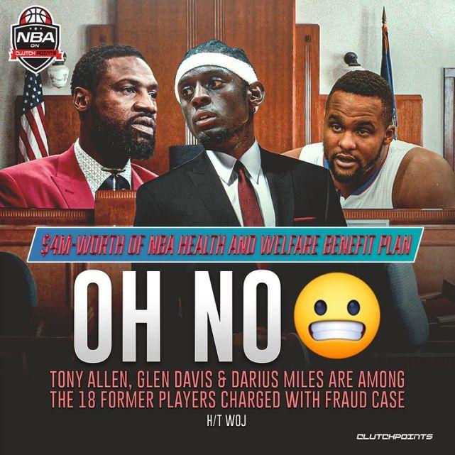JRS直播网10月08日讯 ,18位前NBA球员被指控欺诈联盟,骗取价值400万美元的健康福利计划。美国检察机关表示,如果他们被最终定罪,将会被判入狱,此前,NFL联盟也出现类似事件。