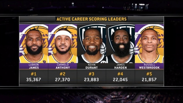 JRS直播网讯 距离新赛季的大幕拉开越来越近,最近美国媒体统计了新赛季得分榜排名前五的球员,令人意外的是,前五球员基本上都集中在湖人和篮网这两支球队当中,那么现役得分榜历史前五的巨星都有谁呢?我们一起来看一下吧!
