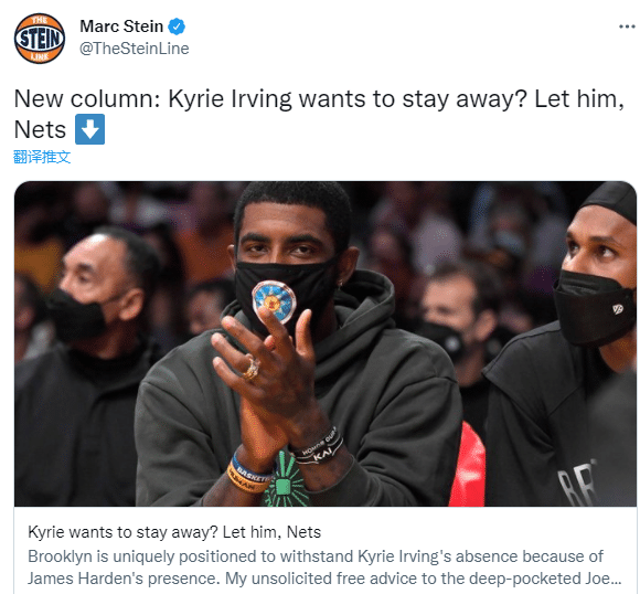 名记marc stein撰文写道:欧文想要离队吗?篮网,赶紧把他交易出去,让他走吧。