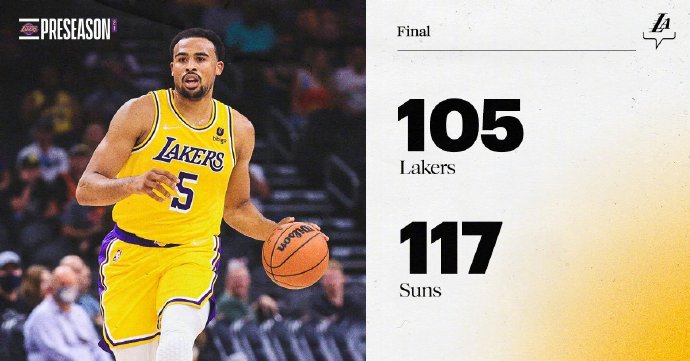 末节,湖人队在进攻端依旧不顺,太阳队通过卡明斯基的一记三分将分差扩大至31分。之后,虽然蒙克与小乔丹连续暴扣得手,帮助湖人队止血,但纳德也随即连续回应,将分差再度扩大至30分以上。到了本节后半段,两队也彻底进入到练兵模式。最终,太阳队以117-105战胜湖人队。