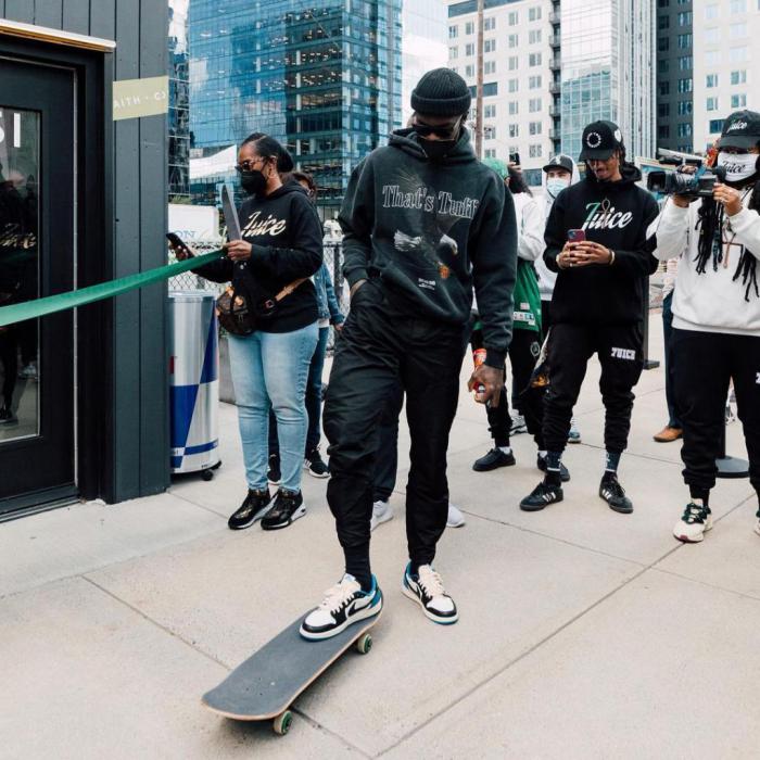 JRS直播网10月04日讯 之前一度遭到球迷调侃的绿军新援施罗德现身于美国街头,而这一次,施罗德并没有在世人的面前展示出他的篮球技巧,而是带上了他心爱的滑板,好好地展示了一把滑板的技术。据悉,这一日,恰逢绿军球员杰伦-布朗的新店开业之际,于是,作为刚刚加入球队的“新人”,施罗德也亲自来到了开店现场,为自己的队友表演滑板助兴。