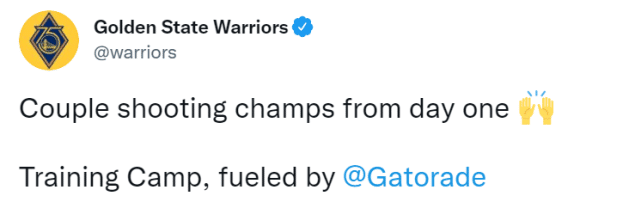 JRS直播网9月29日讯 ,勇士正式开启训练营。在第一天的训练中,新援布拉德利联手克莱-汤普森夺得队内投篮比赛的冠军,两人一起举起金腰带,满脸笑容。勇士官方晒出了两人的合影。