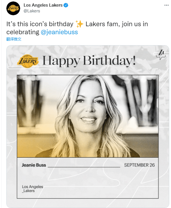另外要说的是,湖人官方恭喜美女老板珍妮-巴斯60岁生日快乐,珍妮-巴斯是在2013年正式接管湖人,并且在2020年成为第一个带领NBA球队夺冠的女老板;新赛季,詹姆斯、威少、浓眉和安东尼等人将带领湖人冲击队史第18座总冠军。