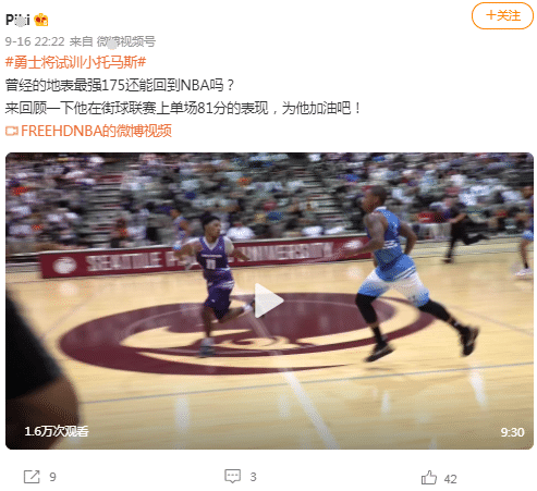 值得一提,在NBA没有找到工作的小托马斯,一样在追梦篮球,他没有就此放弃。今年小托马斯在街球联赛打球,还做到了单场砍下81分的壮举,与他试训勇士的消息放在一起,确实叫人浮想联翩,然而不管小托马斯能否得到勇士的合同,都必须要为他加油。接下来小托马斯还会试训其他NBA球队,如果真的可以,真的希望某个NBA球队能为小托马斯提供机会,验证一下小托马斯是否如同他说的一样:“我现在的身体状况比2017年更好,我甚至可以重新扣篮。”