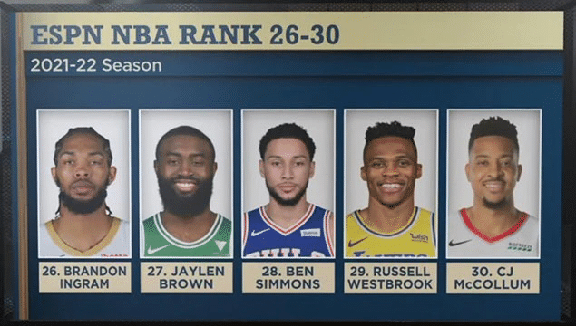 不久前ESPN评选了本赛季的球员排名,身为上赛季助攻王的威少只拿到了29名的成绩,而季后赛他的直接对手本西的排名却高于威少,我们都知道西蒙斯上赛季的表现到底怎么样,如果不是他或许76人早就已经进入总决赛了,然而他在季后赛当中十分的低迷,尤其是面对老鹰的系列赛当中可以说是毫无存在感,这样的西蒙斯怎么能够得到球迷的认可。然而他的常规赛排名却高于威少,这使得一大批的球迷感到不满,尤其是知名评论员帕金斯,为此他甚至爆了粗口。