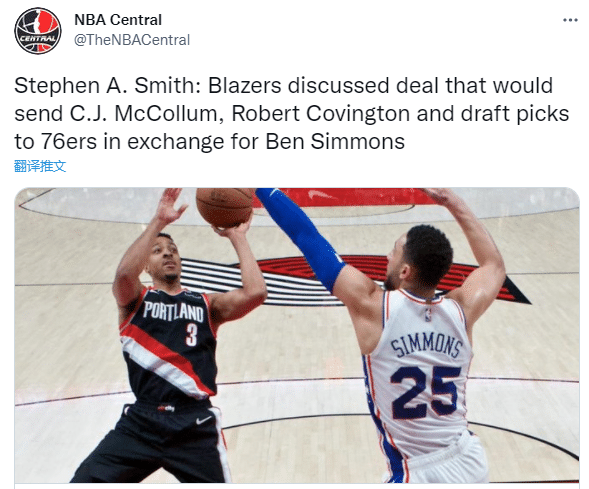 A-史密斯在节目中表示:据我所知,开拓者在讨论是否要用CJ-麦科勒姆、考文顿和几个首轮签来向76人交易得到西蒙斯。他们显然不想公开谈论这件事,因为他们不想在麦科勒姆还在队的情况下,搞得双方的关系变得不好。但不管怎样,这些筹码都是开拓者愿意提供来交易得到西蒙斯的。