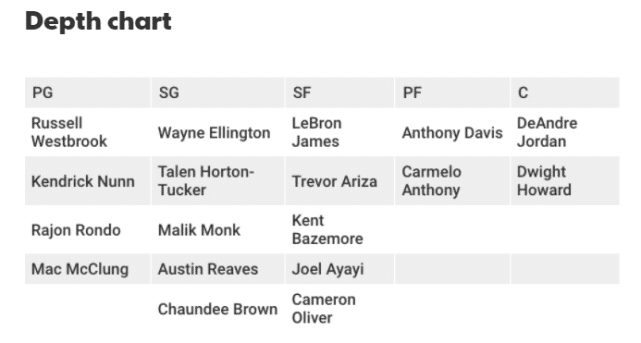 诚然,队内的多位球星已经过了巅峰期,但湖人依然在拥有两位MVP竞争人选的前提下,还增加了威斯布鲁克,一个过去五个赛季四度场均三双的控卫。霍华德、朗多、安东尼都是昔日的全明星,他们都能在各自位置上做出贡献,最后别忘了快要37岁的詹姆斯,他的状态依然很出色。