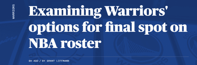 JRS直播网讯 北京时间9月18日,据NBC体育报道,勇士常规阵容的最后一席仍未敲定,而且竞争非常激烈。文中提到了7名球员的名字,他们都有可能搭上这趟末班车。
