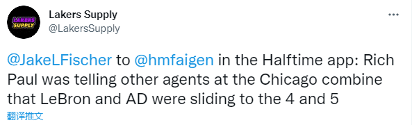 JRS直播网9月16日讯 ,湖人两大巨头詹姆斯和浓眉新赛季的位置曝光,据NBA记者JakeFischer报道,关于湖人首发阵容,他们的经纪人里奇-保罗在芝加哥联合试训期间告诉其他经纪人,詹姆斯将改打四号位,戴维斯会改打五号位。