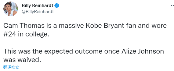19岁卡梅隆-托马斯是篮网首轮第27号秀,在今年夏季联赛中展现不俗的天赋,场均轰下27分力压状元、榜眼夺得得分王,并且和国王新秀米切尔一起夺得夏联MVP;新赛季他将身穿篮网24号球衣,他在大学就是穿24号,是科比的忠实球迷,阿利兹-约翰逊被裁之后,他如愿获得篮网24号。