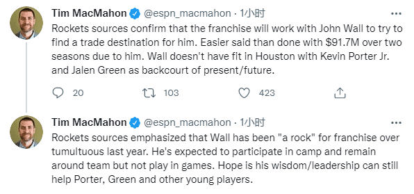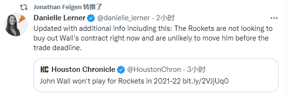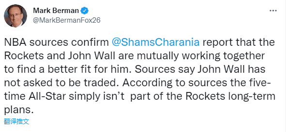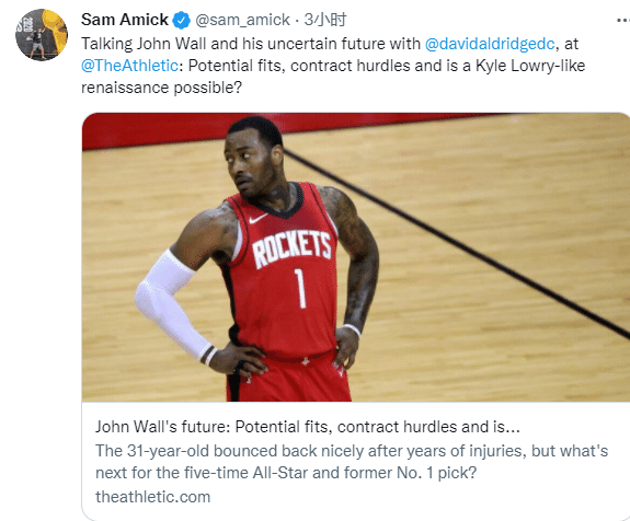 名记Sam Amick则认为除非火箭和沃尔达成买断,否则火箭很难将沃尔送走——不论是现在还是未来。