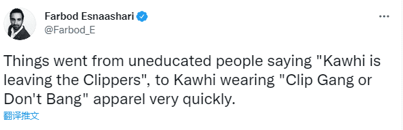 小卡身穿黑色运动裤和黑色连帽卫衣出席纽约时装周,外套和裤子上都印着“Clip Gang or Don't Bang(快船帮或不是快船帮)”,有人认为小卡暗示自己会离队,之后快船跟队记者Farbod Esnaashari怒了,发推怒骂:那些没有受过的教育的人居然说科怀将会离开快船队。