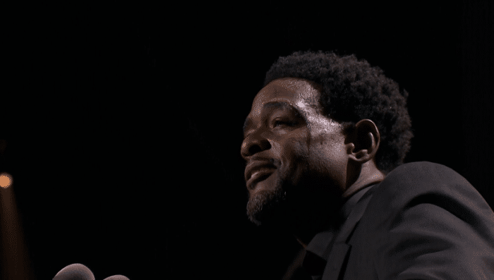发表演讲时,韦伯心情激动,早已满头大汗,时不时地擦拭汗水,期间现场的观战多次鼓掌欢呼,直言微笑刺客是自己的守护天使;演讲完毕后,韦伯拥抱微笑刺客和巴克利,他的两个孩子冲上讲台,此时韦伯露出幸福的表情。