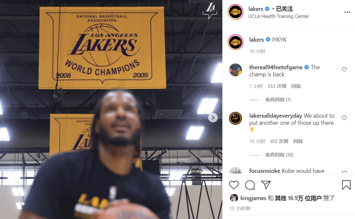 JRS直播网9月10日讯 ,湖人官方今天在社媒上晒出了一张阿里扎的训练图,而阿里扎背后上空挂着的正是紫金军团09年的冠军旗帜。湖人官推配文写到:懂的都懂!值得一提的是,詹姆斯和霍华德都点赞了这条动态,很多球迷表示对此爷青回!