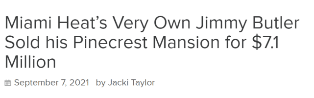 JRS直播网9月09日讯 ,据迈阿密媒体报道,热火球星吉米-巴特勒出售了一套位于迈阿密派恩克雷斯特的豪宅,成交价是710万美元,而巴特勒两年前买下这里的花费是460万美元。短短两年,他赚了250万美元。在NBA球星们近期的售房记录中,能赚钱的实在是少数。