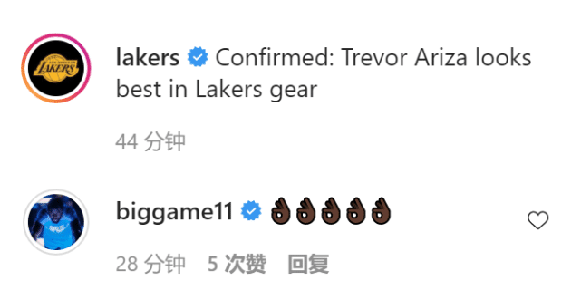 湖人首先晒出的球员,是老将阿里扎。阿里扎一身黑色的湖人训练服,身材保持很不错。官媒评价道:”确认了!阿里扎还是穿湖人装备最赞!”有趣的是自由球员詹姆斯-恩尼斯现身评论区,他发了五个OK的表情,引人遐想。