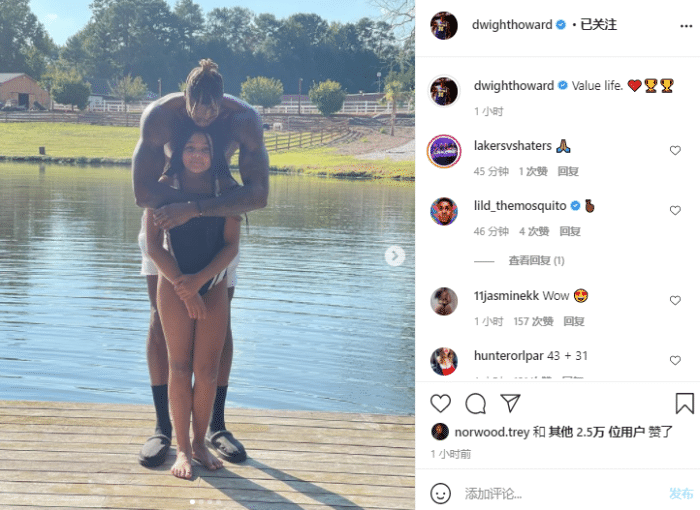 35岁霍华德十分勤奋,先是直播苦练翻身后仰跳投,训练之后老魔兽带着家人去游乐场,配文:珍惜生命(爱心和两座冠军奖杯表情)。