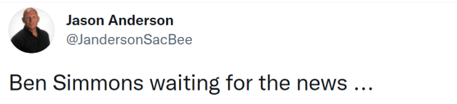 他晒出了一张自己正在理发的照片,理发店的围裙是各支NBA球队的LOGO。西蒙斯一脸严肃地盯着手机,国王记者Jason Anderson转发了这张照片,调侃道:“西蒙斯正在等消息。”至于什么消息,自然是自己被交易到某支球队的消息。