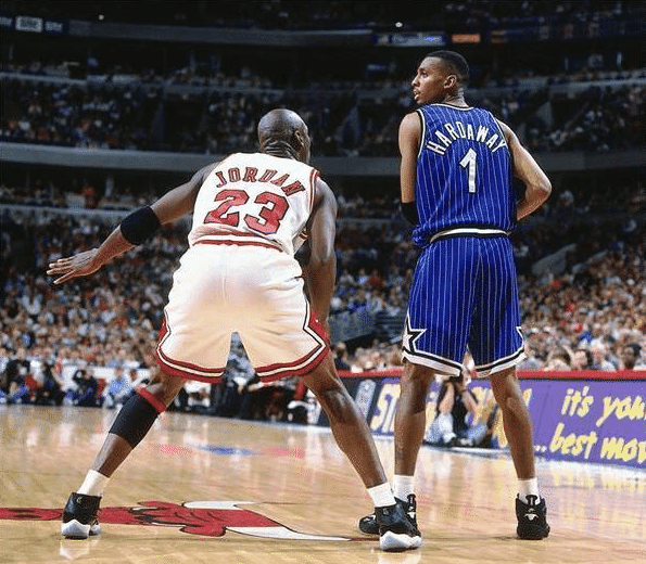 韦德职业生涯拥有总冠军和FMVP,不代表韦德可以在巅峰对话中面对便士取得绝对优势,如果你有幸观看过便士哈达威的比赛,你会明白魔术队当年优先选择便士而不是奥尼尔,并非没有原因,第一代公认的乔丹接班人,健康的便士哈达威确实太强了,他和韦德同样互不相让。