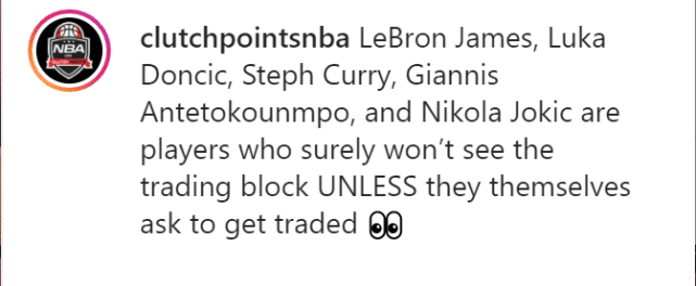 JRS直播网讯 当今联盟中,有哪些球星是真正的非卖品?北京时间9月4日,美媒clutchpoints列出了现役五大非卖品,他们分别是詹姆斯、库里、东契奇、字母哥和约基奇。“除非他们自己要求,否则这些球员是不可能被球队交易的。”美媒评价道。