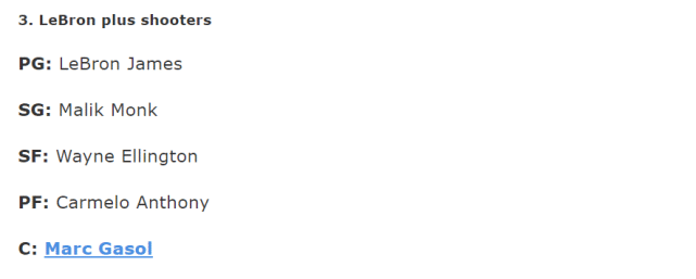 3.詹姆斯带射手的阵容