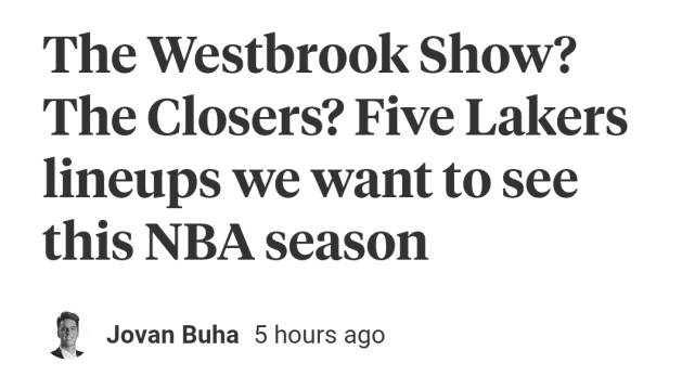 JRS直播网9月03日讯 ,湖人跟队记者Jovan Buha对球队现有球员进行解析,列出了五套可能在新赛季派上大用场的轮换阵容。这五套阵容适用于不同的时段和状况,也体现了目前这支湖人强悍的阵容深度。
