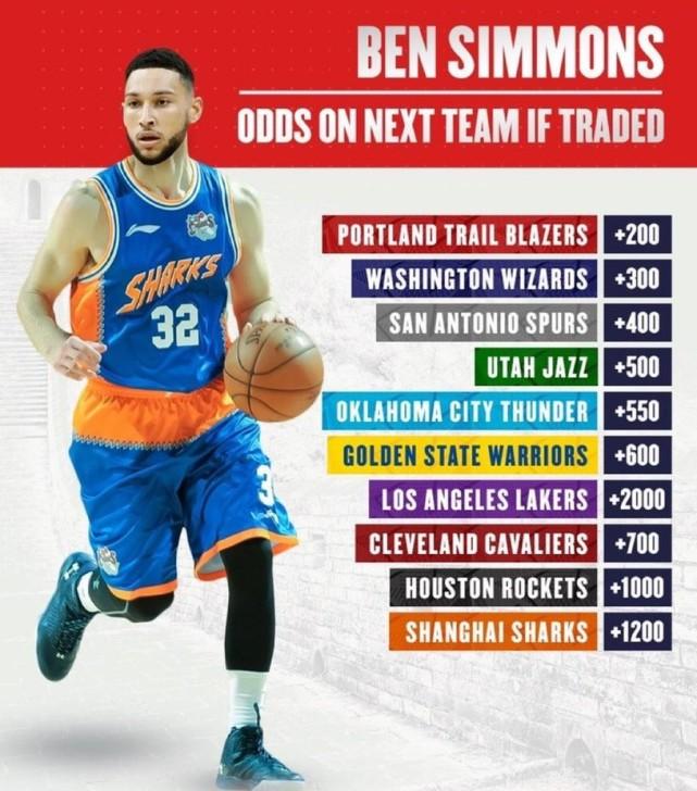 如果被交易离队,西蒙斯的新下家会是谁呢?相关网站公布了最新的赔率:开拓者、奇才和马刺是排名靠前的三支球队,有趣的是CBA的上海大鲨鱼也出现在其中,赔率是+1200,排位高于湖人(+2000)。也有网站认为国王已经成为最可能得到西蒙斯的球队。大家看好西蒙斯新赛季为哪支球队打球呢?