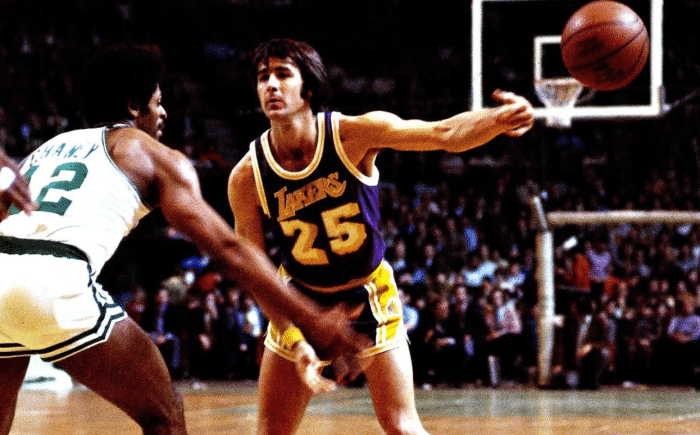 湖人名宿盖尔-古德里奇以19181分排名第4。这名后卫生涯场均18.6分,5次入选全明星,1972年帮助湖人夺冠,在1996年入选名人堂。