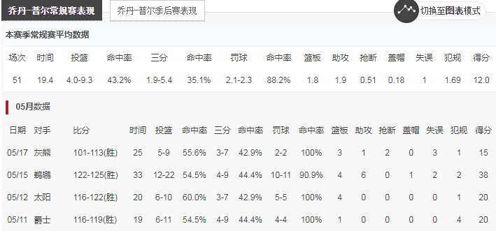 今年5月15日勇士125-122击败鹈鹕的比赛,普尔就上演了属于他的时刻,全场22投12中,三分球9中4,罚球11中10,疯狂轰下38分4篮板6助攻1盖帽,并且前面两场比赛普尔都有至少20分的输出,投出手感的普尔十分具有侵略性,大大地分担了库里的压力,成为了汤神伤停之后的最佳替身。