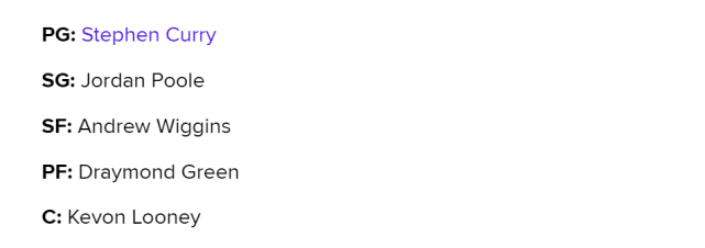 勇士首发:库里+普尔+维金斯+格林+卢尼