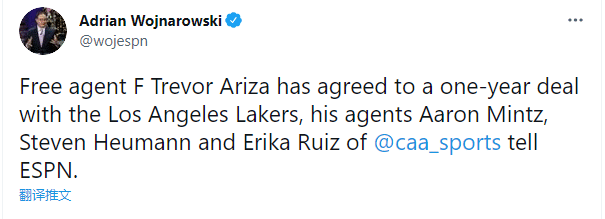 JRS直播网讯 北京时间8月3日,NBA自由球员交易市场开启后,湖人引援悍将阿里扎,据ESPN名记沃纳罗斯基报道,阿里扎已经同意和湖人签下一年合同;因此36岁的阿里扎重返湖人,他曾在09年帮助湖人夺得总冠军;之后湖人又签回霍华德,连签两大夺冠功臣。