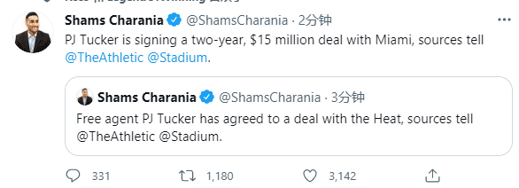 据名记shams报道,自由球员PJ-塔克已经和热火签下一份2年1500万美元的合同;上赛季,36岁的塔克在赛季中期被火箭交易到雄鹿,他为雄鹿出战20场常规赛,场均拿到2.6分2.8篮板,季后赛出战23场并且首发19场,场均上场29.6分钟拿到4.3分4.8篮板,数据不出色,但他在场上的防守是雄鹿夺冠的一大原因。