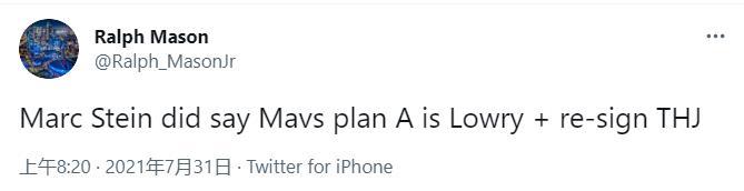 JRS直播网讯 北京时间7月31日,据《纽约时报》记者马克-斯坦报道,独行侠目前最大的引援计划曝光,那就是引进猛龙控卫洛瑞,同时和队内的小哈达威续约。