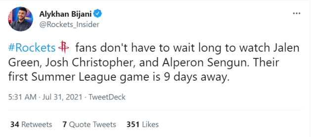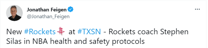JRS直播网讯 北京时间7月31日,休斯顿火箭召开了新秀见面会,除了正在征战奥运会的加鲁巴,其余三位被火箭选中的首轮秀都正式亮相休城。总经理斯通对三位新秀进行了逐一介绍,不过主帅塞拉斯并未来到现场。火箭记者费根报道称,赛拉斯因触发健康安全协议被隔离。