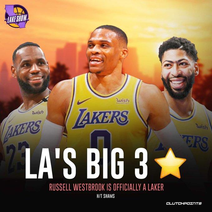 JRS直播网讯 北京时间7月20日,今日早些时候NBA重磅交易达成,湖人用库兹马、哈雷尔、波普和今年22号签换来了威少和两个次轮签,湖人组成了三巨头阵容!
