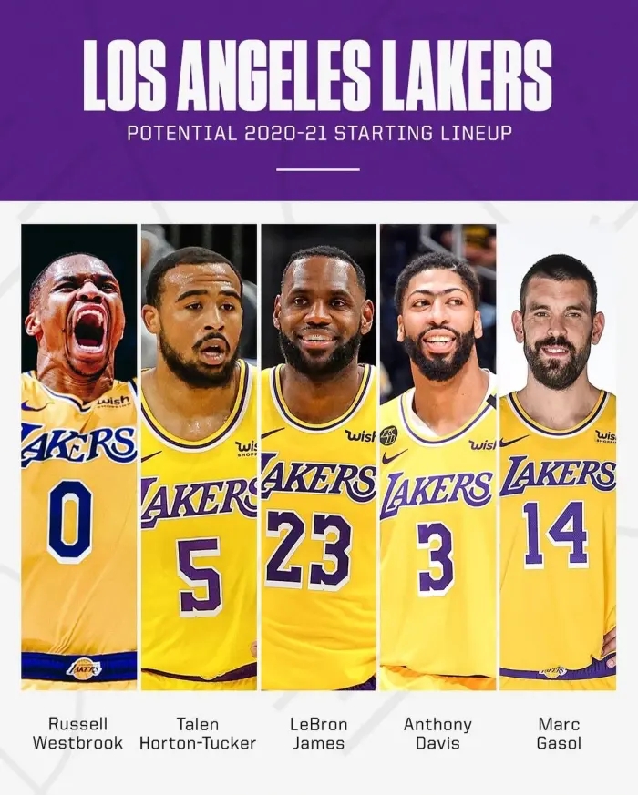 ESPN晒湖人新赛季潜在首发,小塔克、威少进入首发,另外小加在列!关于湖人的这笔交易,国内名嘴王猛表示,他也认为球队三分球太差,进攻空间不好,但到了季后赛有了威少球队就多了一个能杀进去得分的人,参考过往夺冠球队的经历,三分球准头也都不太好。当然了,这不意味着湖人不要三分,后续操作肯定会针对这个方面!