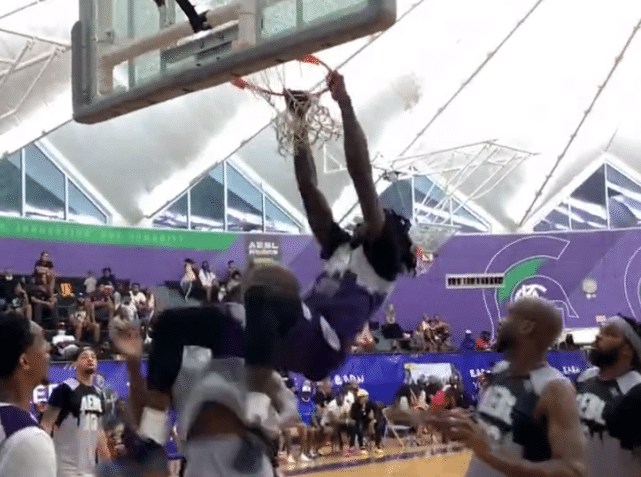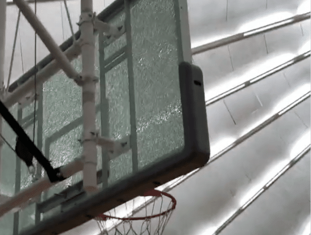JRS直播网讯 北京时间7月26日,在亚特兰大举办的AEBL夏季联赛中,湖人球员哈雷尔一次大力双手扣篮,竟然把篮板扣碎了!球迷调侃哈雷尔简直是奥尼尔附体,由于现在篮板材质和以往不同,哈雷尔的这次扣篮,并没有达到奥尼尔扣篮后彻底粉碎落地的效果,但镜头显示,篮板的有机玻璃已经全部呈“碎裂”状态。
