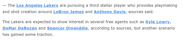 JRS直播网讯 北京时间7月26日,名记查拉尼亚和沃纳罗斯基都报道了湖人的最新运作。这支在本赛季首轮就被淘汰的劲旅,正试图在休赛期补强阵容,力争在2021-22赛季重夺总冠军。