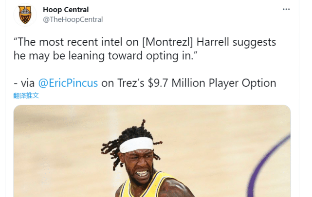 去年休赛期,哈雷尔与湖人签下了两年1900万美元的合同,其中第二年拥有球员选项。在今年首轮季后赛中,哈雷尔并没有得到主帅沃格尔的重用,场均仅得到9.8分钟的出场时间,甚至有两场比赛直接被雪藏坐穿冷板凳。湖人被太阳淘汰出局后,哈雷尔曾在社媒上发长文感谢湖人,当时很多球迷猜测这名内线很有可能会跳出球员选项成为一名自由球员。