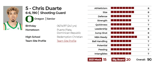 JRS直播网讯 北京时间7月23日,距离2021年选秀大会还有一周时间,湖人拥有首轮22号签。据The Athletic记者Sam Vecenie报道,多支球队相信湖人已经向一位新秀做出承诺:如果他跌到这个位置,湖人就将选择他!这位新秀就是俄勒冈大学的后卫克里斯-杜阿尔特。